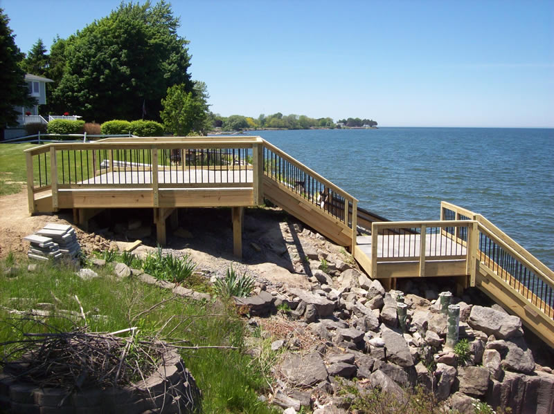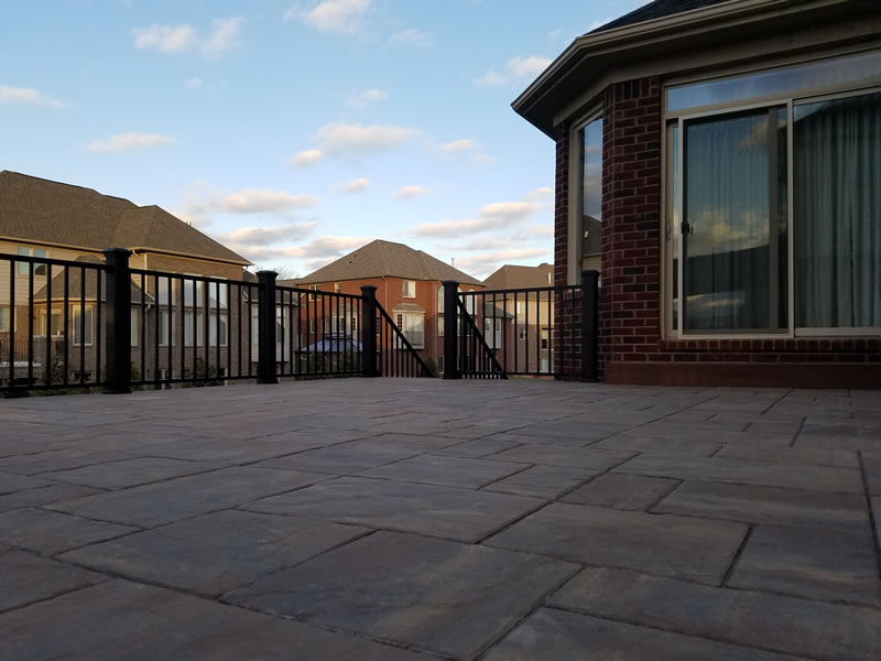 The StoneDeks elevated/raised paver stone deck system is a sub-flooring system that is installed on existing or newly designed and installed wood or metal deck joists. The StoneDeks system allows us to install any type of stone or paver you choose. StoneDeks System can help you transform your wood deck into a beautiful, durable and low-maintenance brick paver stone deck. View the gallery below to see one of completed elevated/raised deck projects.